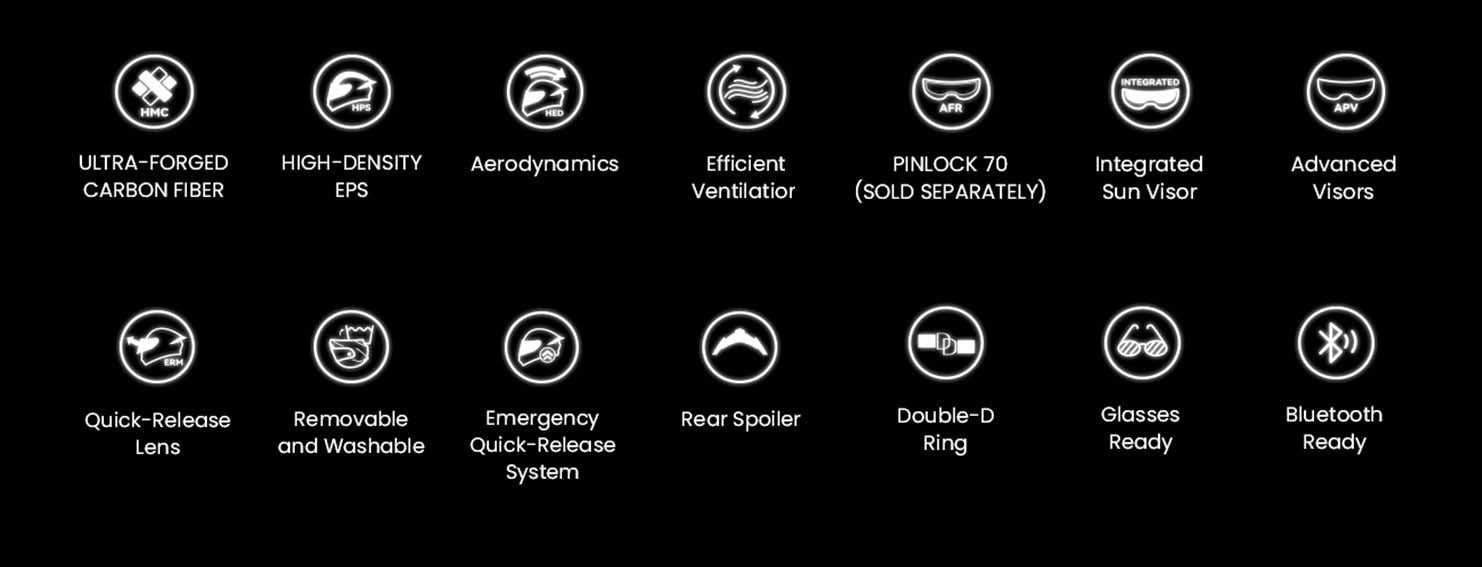 At the core of our S-GT series helmet is an ultra-lightweight hybrid shell, precision-crafted from both hyper-forged carbon fiber (HFC) and rigid high-modulus carbon fiber (HMC) — weighs just about 1380g. Light enough for all-day rides, tough enough for the unexpected.